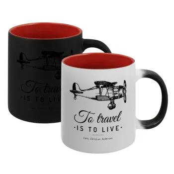 To travel is to live, Κούπα Μαγική εσωτερικό κόκκινο, κεραμική, 330ml που αλλάζει χρώμα με το ζεστό ρόφημα
