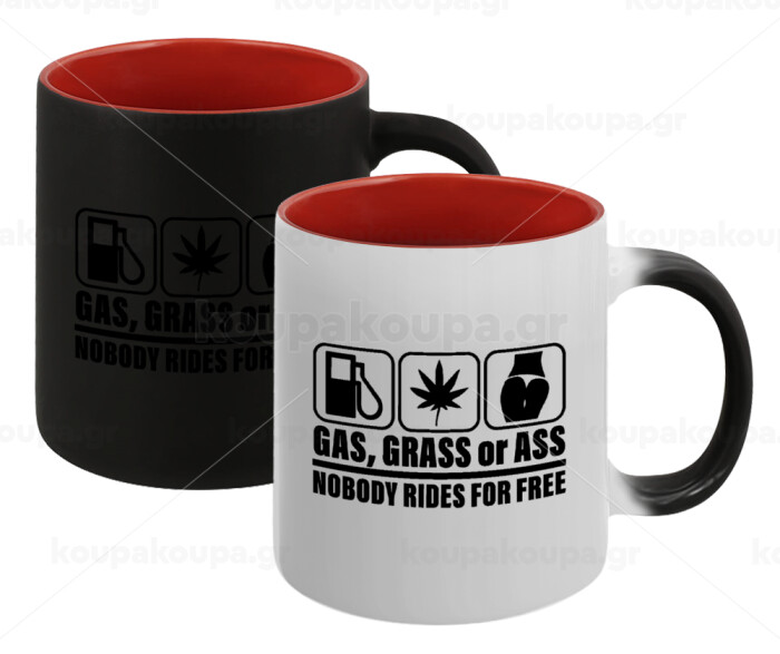 Gas, Grass or Ass, Κούπα Μαγική εσωτερικό κόκκινο, κεραμική, 330ml που αλλάζει χρώμα με το ζεστό ρόφημα