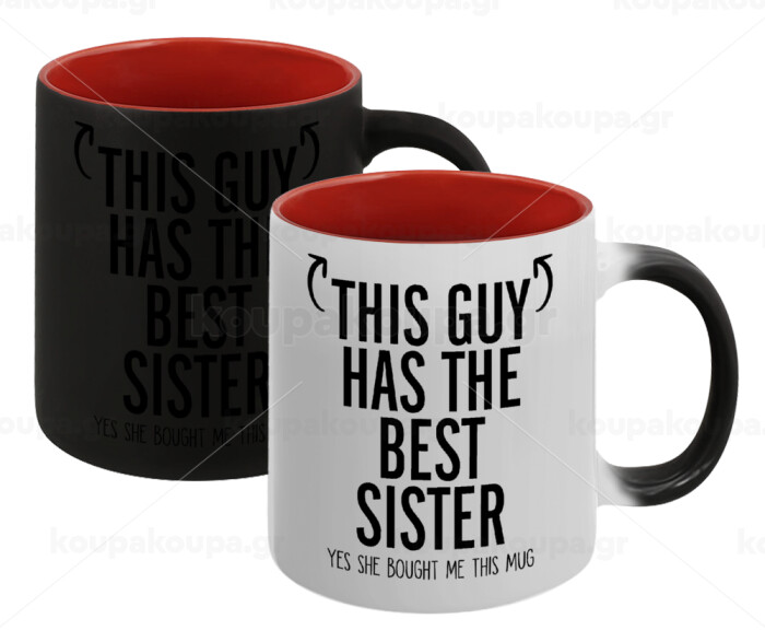 This guy has the best Sister, Κούπα Μαγική εσωτερικό κόκκινο, κεραμική, 330ml που αλλάζει χρώμα με το ζεστό ρόφημα