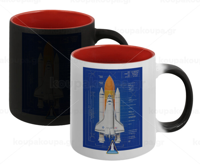Nasa Space Shuttle, Κούπα Μαγική εσωτερικό κόκκινο, κεραμική, 330ml που αλλάζει χρώμα με το ζεστό ρόφημα