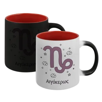 Ζώδια Αιγόκερως, Κούπα Μαγική εσωτερικό κόκκινο, κεραμική, 330ml που αλλάζει χρώμα με το ζεστό ρόφημα