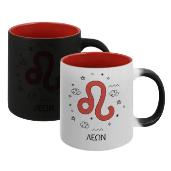 Ζώδια Λέων, Κούπα Μαγική εσωτερικό κόκκινο, κεραμική, 330ml που αλλάζει χρώμα με το ζεστό ρόφημα