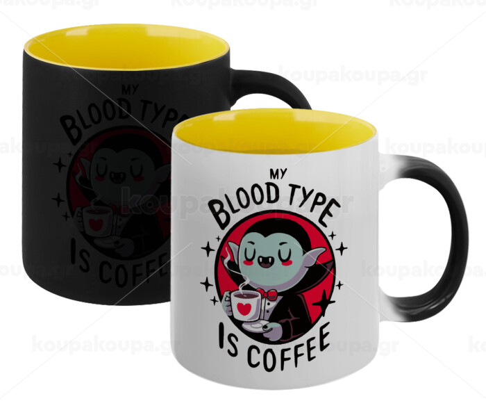 Κούπα μαύρη μαγική ΜΑΤ εξαιρετικής ποιότητας. Με καφέ, τσάι, νερό ή οποιοδήποτε υγρό από 50 βαθμούς και άνω η κούπα αρχίζει να εμφανίζει το σχέδιο έκπληξη. Μόλις το υγρό πέφτει κάτω από τους 50 βαθμούς και αρχίζει να κρυώνει, ξαναγίνεται μαύρη.