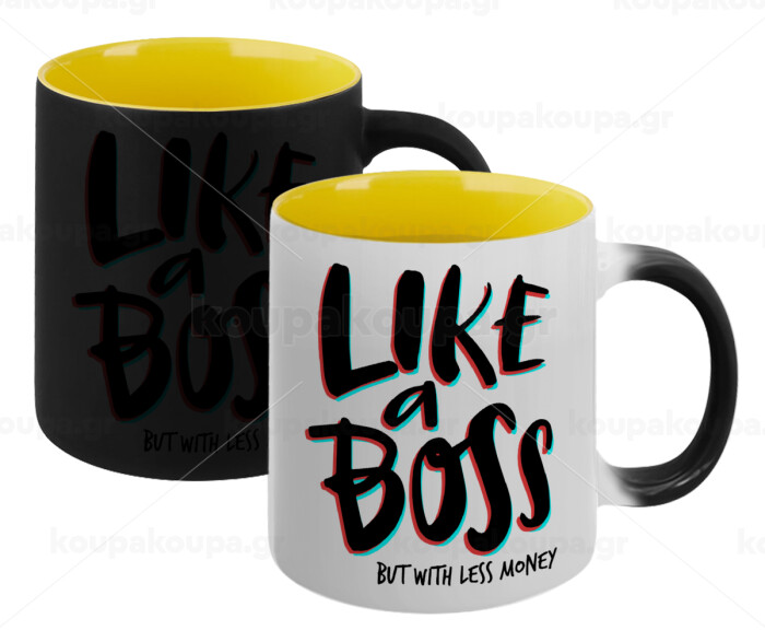 Like a boss, but with less money!!!, Κούπα Μαγική εσωτερικό κίτρινη, κεραμική 330ml που αλλάζει χρώμα με το ζεστό ρόφημα