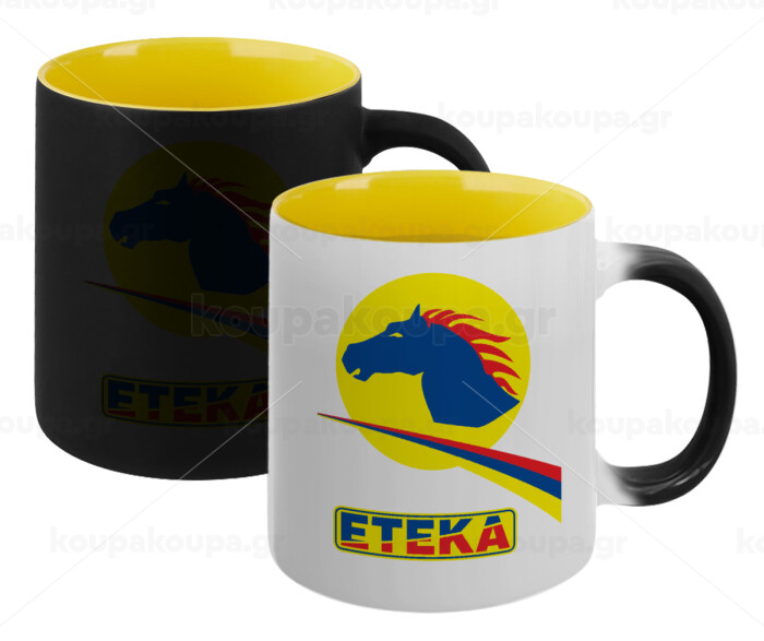 Πρατήριο καυσίμων ETEKA, Κούπα Μαγική εσωτερικό κίτρινη, κεραμική 330ml που αλλάζει χρώμα με το ζεστό ρόφημα