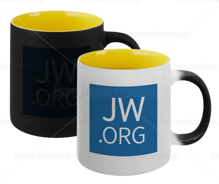 JW.ORG, Κούπα Μαγική εσωτερικό κίτρινη, κεραμική 330ml που αλλάζει χρώμα με το ζεστό ρόφημα