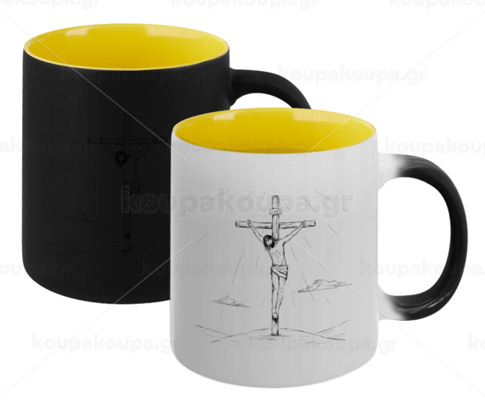 Jesus Christ , Κούπα Μαγική εσωτερικό κίτρινη, κεραμική 330ml που αλλάζει χρώμα με το ζεστό ρόφημα