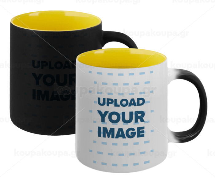 Το δικό σου σχέδιο, Κούπα Μαγική εσωτερικό κίτρινη, κεραμική 330ml που αλλάζει χρώμα με το ζεστό ρόφημα