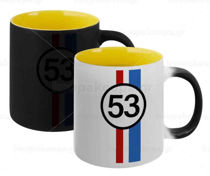 VW Herbie 53, Κούπα Μαγική εσωτερικό κίτρινη, κεραμική 330ml που αλλάζει χρώμα με το ζεστό ρόφημα
