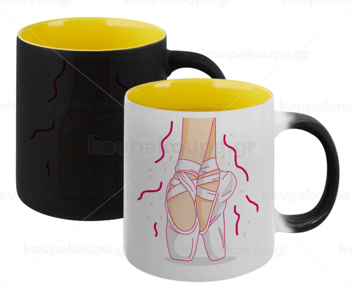 Πουεντ, Κούπα Μαγική εσωτερικό κίτρινη, κεραμική 330ml που αλλάζει χρώμα με το ζεστό ρόφημα