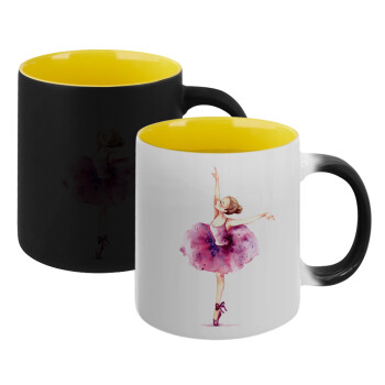 Ballerina in Paris, Κούπα Μαγική εσωτερικό κίτρινη, κεραμική 330ml που αλλάζει χρώμα με το ζεστό ρόφημα