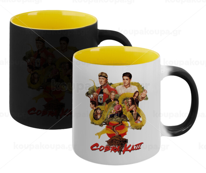 Cobra Kai tree, Κούπα Μαγική εσωτερικό κίτρινη, κεραμική 330ml που αλλάζει χρώμα με το ζεστό ρόφημα