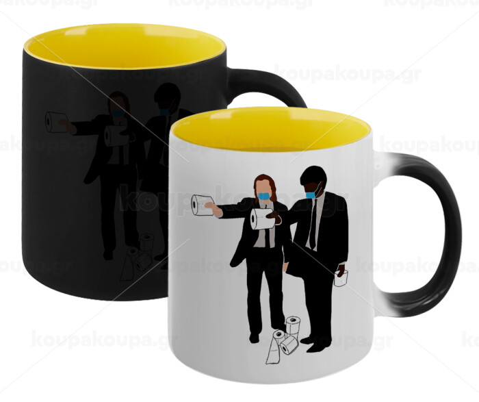 Pulp Fiction 3 meter away, Κούπα Μαγική εσωτερικό κίτρινη, κεραμική 330ml που αλλάζει χρώμα με το ζεστό ρόφημα