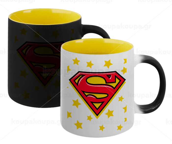 Superman Blue, Κούπα Μαγική εσωτερικό κίτρινη, κεραμική 330ml που αλλάζει χρώμα με το ζεστό ρόφημα