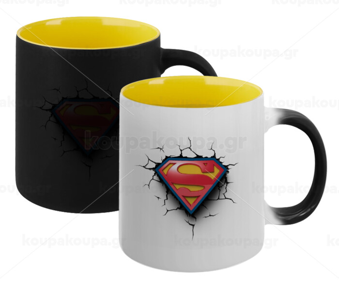 Superman cracked, Κούπα Μαγική εσωτερικό κίτρινη, κεραμική 330ml που αλλάζει χρώμα με το ζεστό ρόφημα