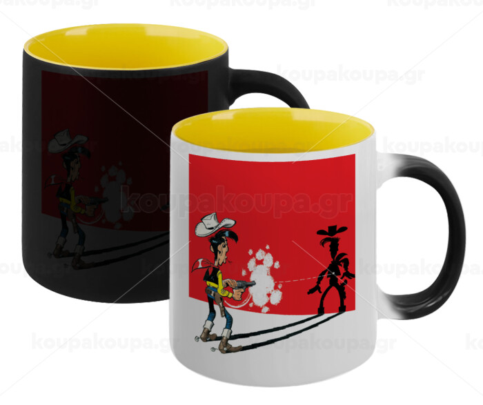 Λούκυ Λουκ σκιές, Κούπα Μαγική εσωτερικό κίτρινη, κεραμική 330ml που αλλάζει χρώμα με το ζεστό ρόφημα