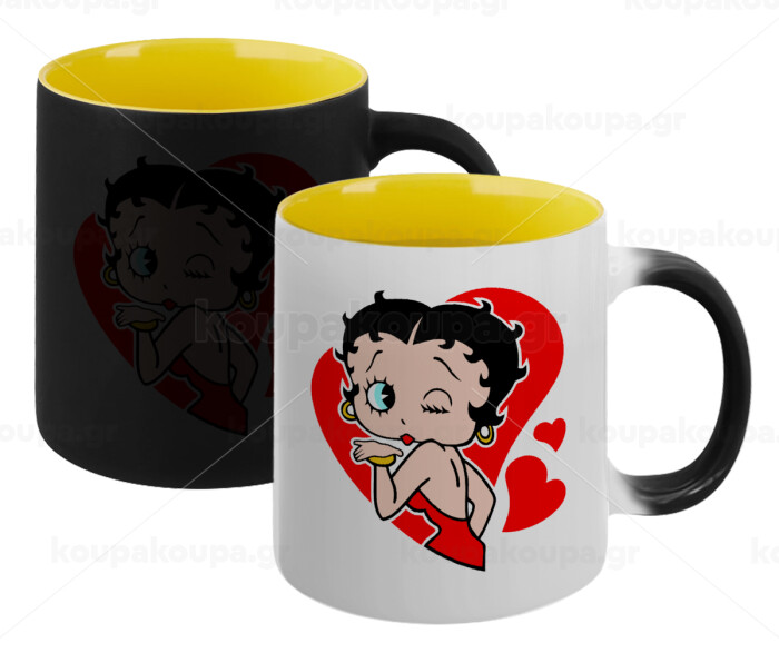 Betty Boop, Κούπα Μαγική εσωτερικό κίτρινη, κεραμική 330ml που αλλάζει χρώμα με το ζεστό ρόφημα