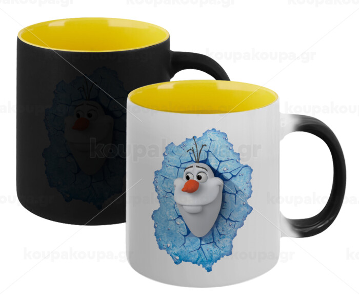 Frozen Olaf, Κούπα Μαγική εσωτερικό κίτρινη, κεραμική 330ml που αλλάζει χρώμα με το ζεστό ρόφημα