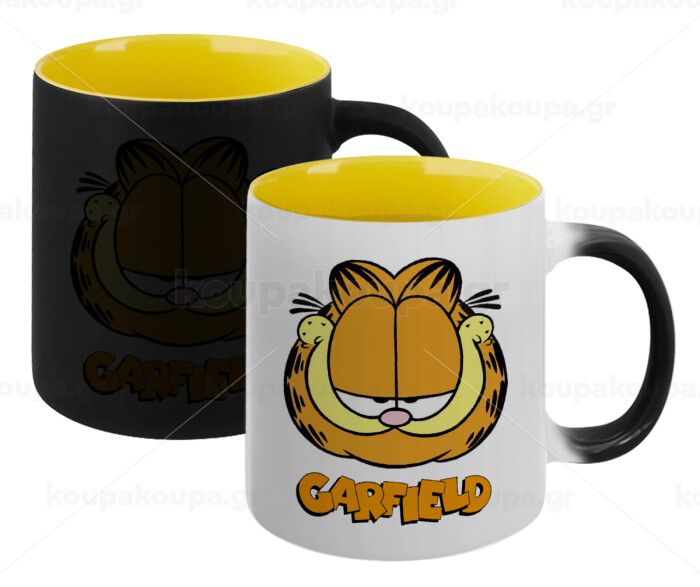 Garfield, Κούπα Μαγική εσωτερικό κίτρινη, κεραμική 330ml που αλλάζει χρώμα με το ζεστό ρόφημα