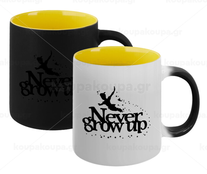 Peter pan, Never Grow UP, Κούπα Μαγική εσωτερικό κίτρινη, κεραμική 330ml που αλλάζει χρώμα με το ζεστό ρόφημα