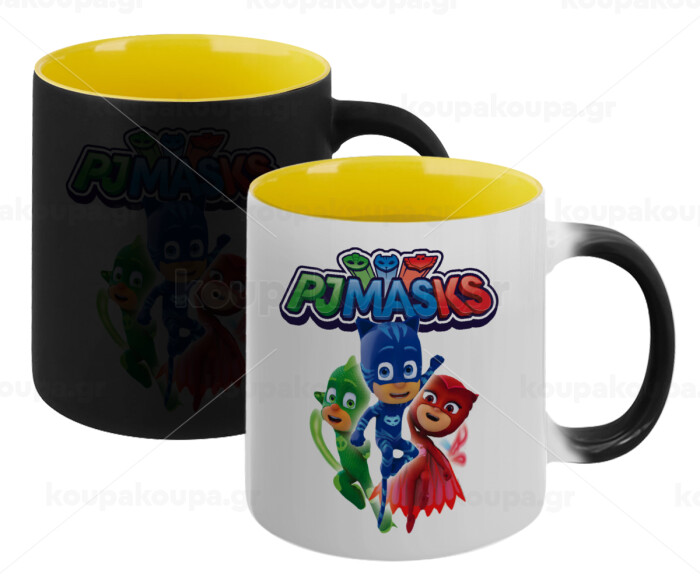 PJ masks, Κούπα Μαγική εσωτερικό κίτρινη, κεραμική 330ml που αλλάζει χρώμα με το ζεστό ρόφημα