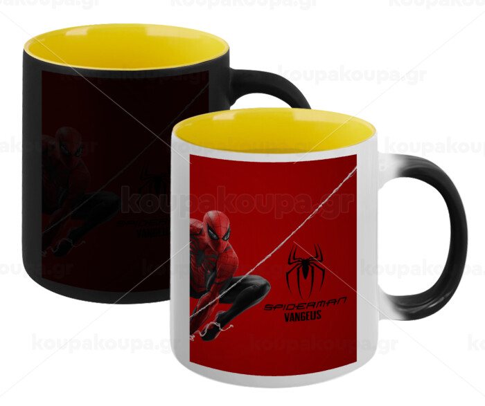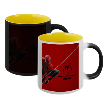 Spiderman, Κούπα Μαγική εσωτερικό κίτρινη, κεραμική 330ml που αλλάζει χρώμα με το ζεστό ρόφημα