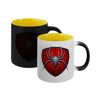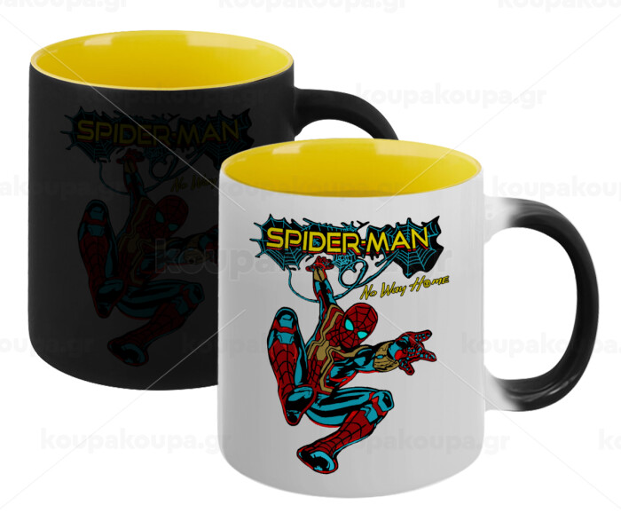 Spiderman no way home, Κούπα Μαγική εσωτερικό κίτρινη, κεραμική 330ml που αλλάζει χρώμα με το ζεστό ρόφημα