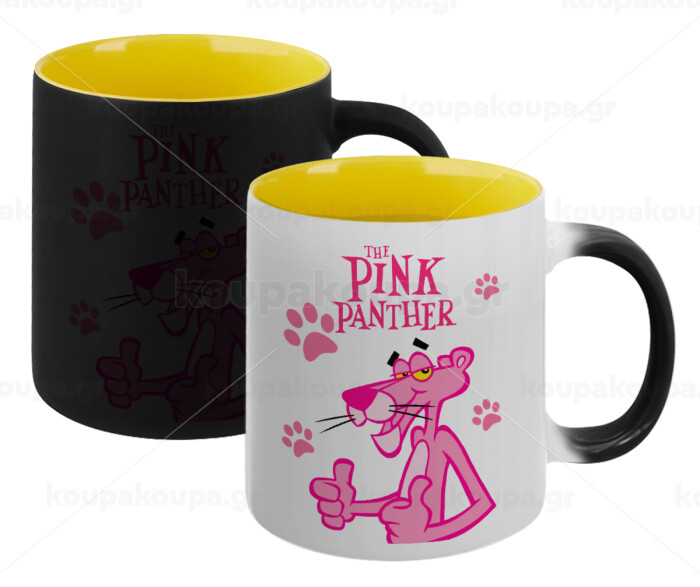 The pink panther, Κούπα Μαγική εσωτερικό κίτρινη, κεραμική 330ml που αλλάζει χρώμα με το ζεστό ρόφημα
