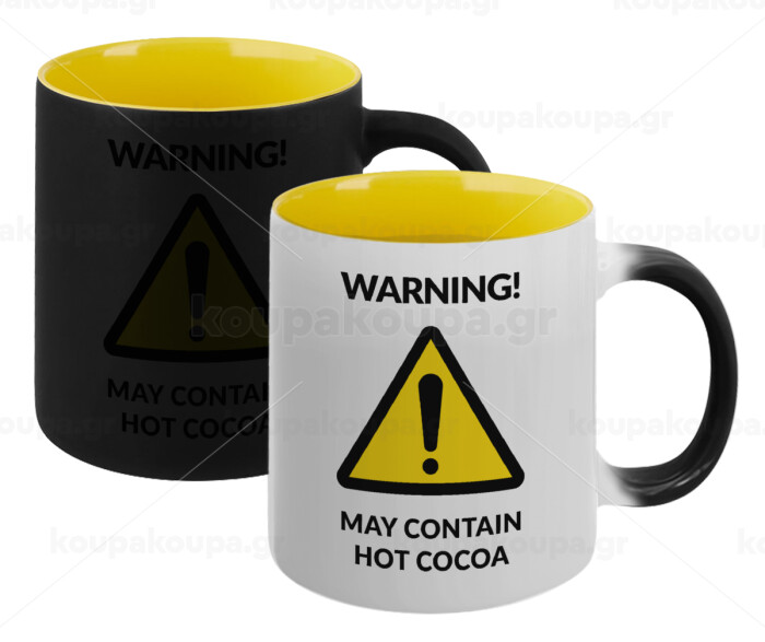 Κούπα μαύρη μαγική ΜΑΤ εξαιρετικής ποιότητας. Με καφέ, τσάι, νερό ή οποιοδήποτε υγρό από 50 βαθμούς και άνω η κούπα αρχίζει να εμφανίζει το σχέδιο έκπληξη. Μόλις το υγρό πέφτει κάτω από τους 50 βαθμούς και αρχίζει να κρυώνει, ξαναγίνεται μαύρη.