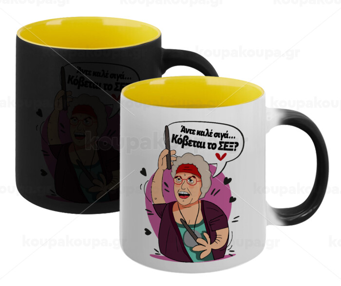 Αντε καλέ, σιγά, κόβεται το σέξ ;, Κούπα Μαγική εσωτερικό κίτρινη, κεραμική 330ml που αλλάζει χρώμα με το ζεστό ρόφημα