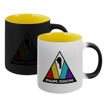 Imagine Dragons, Κούπα Μαγική εσωτερικό κίτρινη, κεραμική 330ml που αλλάζει χρώμα με το ζεστό ρόφημα