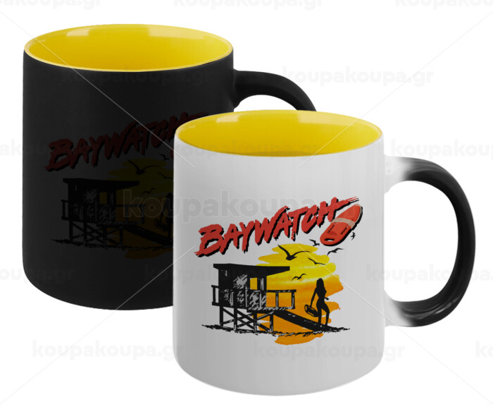 Baywatch, Κούπα Μαγική εσωτερικό κίτρινη, κεραμική 330ml που αλλάζει χρώμα με το ζεστό ρόφημα
