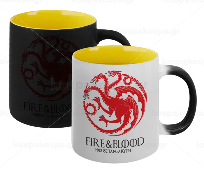 GOT House Targaryen, Fire Blood, Κούπα Μαγική εσωτερικό κίτρινη, κεραμική 330ml που αλλάζει χρώμα με το ζεστό ρόφημα