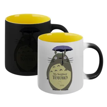 Totoro from My Neighbor Totoro, Κούπα Μαγική εσωτερικό κίτρινη, κεραμική 330ml που αλλάζει χρώμα με το ζεστό ρόφημα