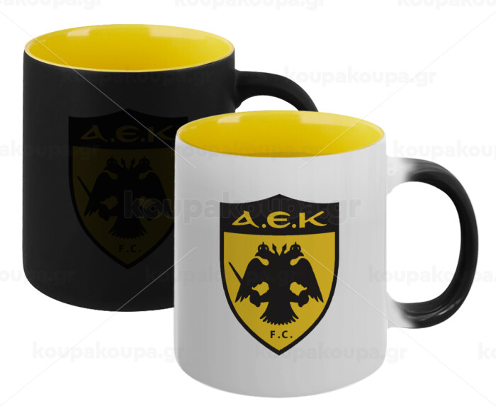 ΑΕΚ, Κούπα Μαγική εσωτερικό κίτρινη, κεραμική 330ml που αλλάζει χρώμα με το ζεστό ρόφημα