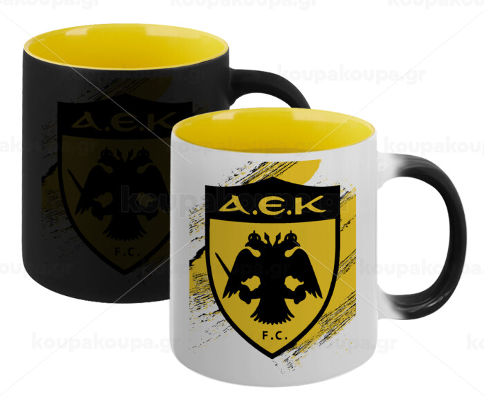 FC Α.Ε.Κ., Κούπα Μαγική εσωτερικό κίτρινη, κεραμική 330ml που αλλάζει χρώμα με το ζεστό ρόφημα