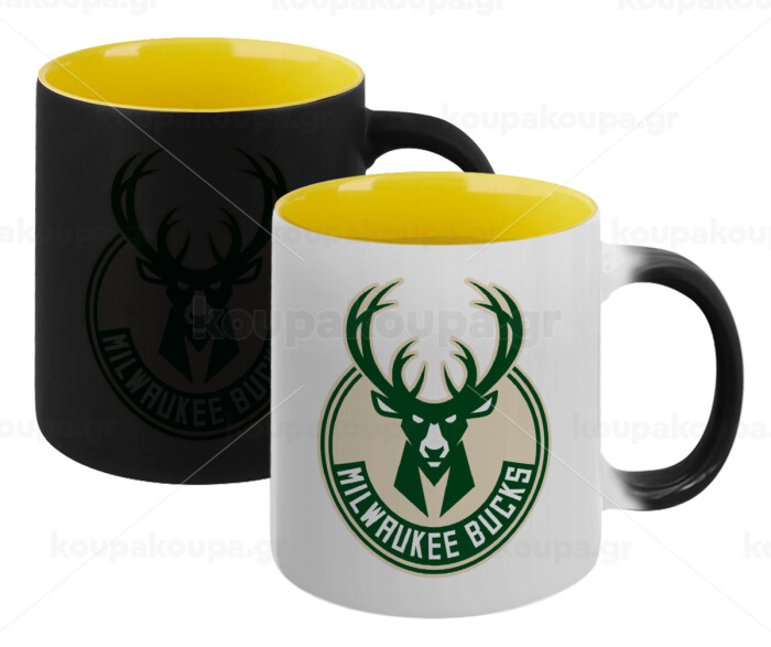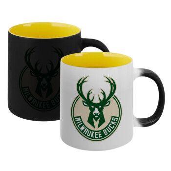 Milwaukee bucks, Κούπα Μαγική εσωτερικό κίτρινη, κεραμική 330ml που αλλάζει χρώμα με το ζεστό ρόφημα