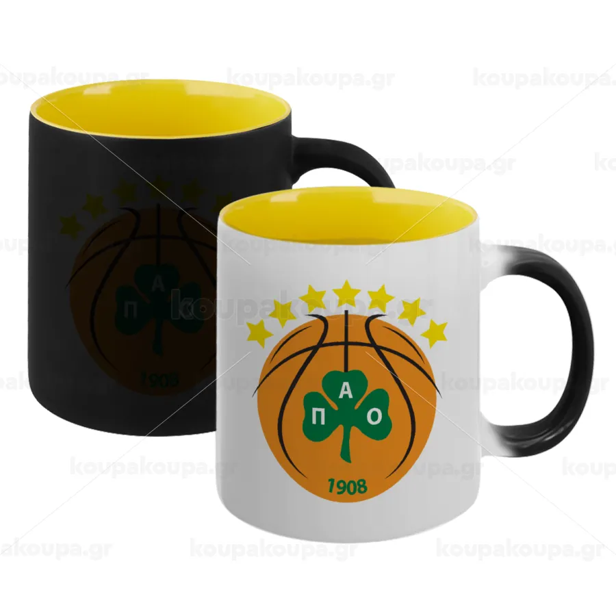 ΠΑΟ BC, Κούπα Μαγική εσωτερικό κίτρινη, κεραμική 330ml που αλλάζει χρώμα με το ζεστό ρόφημα