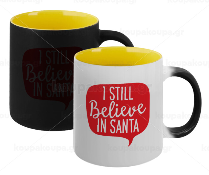 Ι still believe in santa, Κούπα Μαγική εσωτερικό κίτρινη, κεραμική 330ml που αλλάζει χρώμα με το ζεστό ρόφημα
