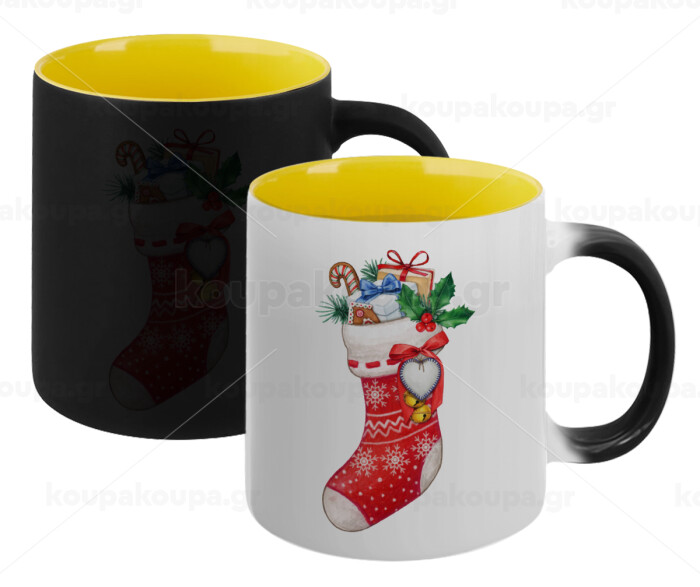 Xmas boot, Κούπα Μαγική εσωτερικό κίτρινη, κεραμική 330ml που αλλάζει χρώμα με το ζεστό ρόφημα
