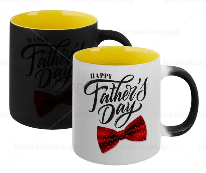Happy father's Days, Κούπα Μαγική εσωτερικό κίτρινη, κεραμική 330ml που αλλάζει χρώμα με το ζεστό ρόφημα