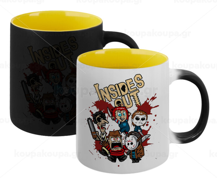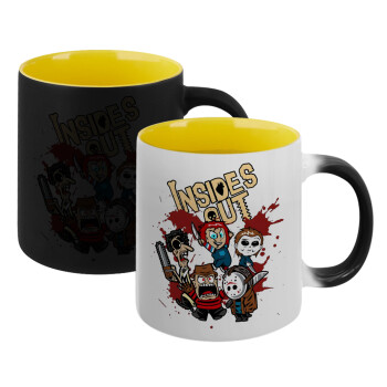 Halloween Inside out, Κούπα Μαγική εσωτερικό κίτρινη, κεραμική 330ml που αλλάζει χρώμα με το ζεστό ρόφημα