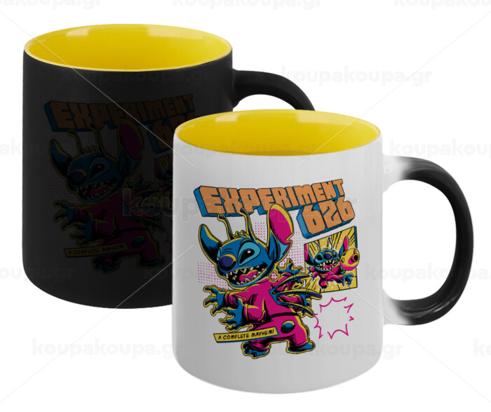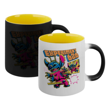 Stitch Experiment 626, Κούπα Μαγική εσωτερικό κίτρινη, κεραμική 330ml που αλλάζει χρώμα με το ζεστό ρόφημα