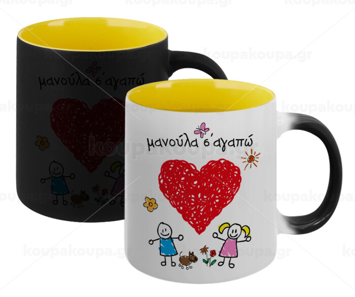 Μανούλα σ'αγαπώ!, Κούπα Μαγική εσωτερικό κίτρινη, κεραμική 330ml που αλλάζει χρώμα με το ζεστό ρόφημα