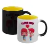 Couple, I love you, Κούπα Μαγική εσωτερικό κίτρινη, κεραμική 330ml που αλλάζει χρώμα με το ζεστό ρόφημα