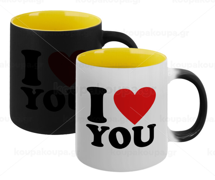 I LOVE YOU, Κούπα Μαγική εσωτερικό κίτρινη, κεραμική 330ml που αλλάζει χρώμα με το ζεστό ρόφημα