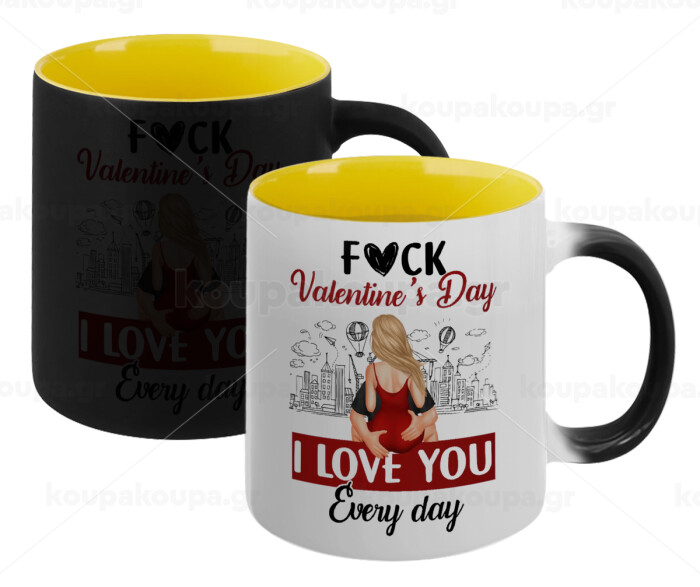 I love You Everyday , Κούπα Μαγική εσωτερικό κίτρινη, κεραμική 330ml που αλλάζει χρώμα με το ζεστό ρόφημα