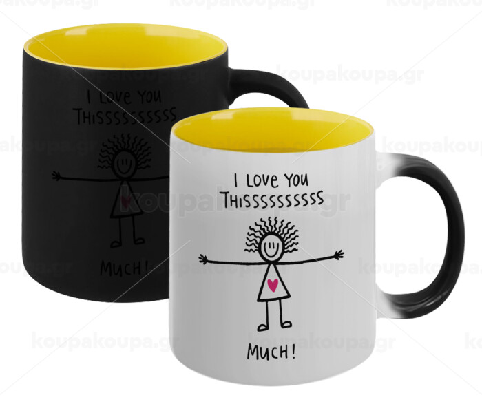 I Love you thissss much..., Κούπα Μαγική εσωτερικό κίτρινη, κεραμική 330ml που αλλάζει χρώμα με το ζεστό ρόφημα