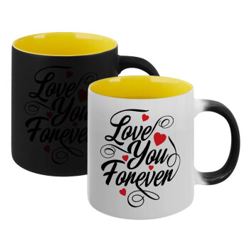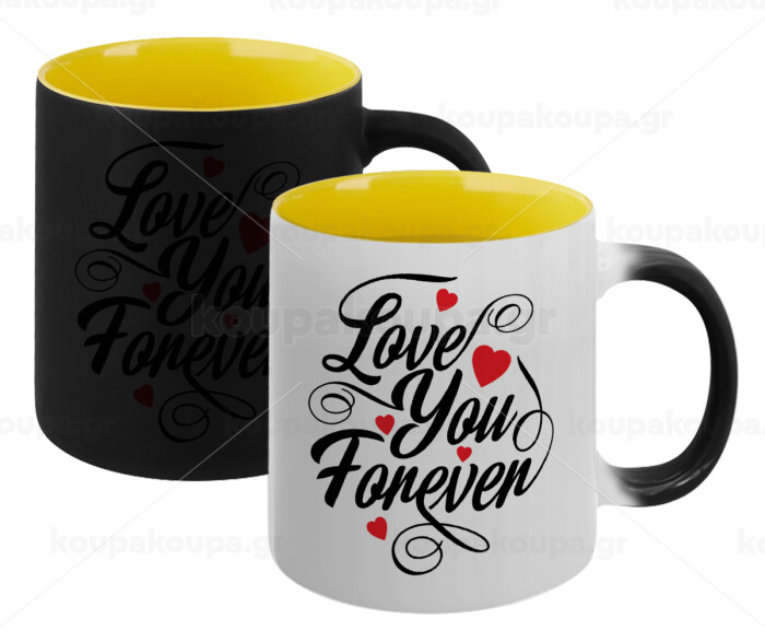 Love you forever, Κούπα Μαγική εσωτερικό κίτρινη, κεραμική 330ml που αλλάζει χρώμα με το ζεστό ρόφημα