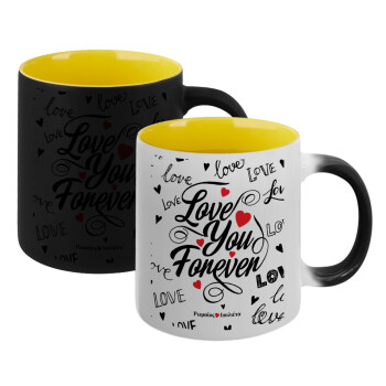 Love You Forever, Κούπα Μαγική εσωτερικό κίτρινη, κεραμική 330ml που αλλάζει χρώμα με το ζεστό ρόφημα